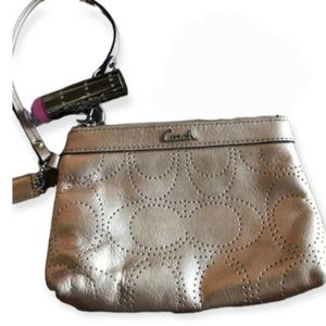 COACH Metallic Perforated Signature C Logo Wristlet EUC