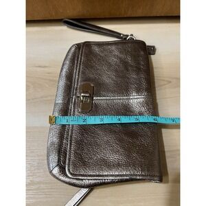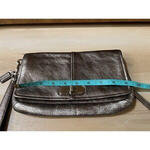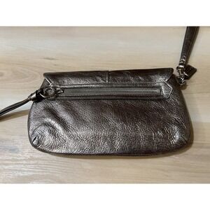 COACH Metallic Silver Pebbled Leather Wristlet Clutch Purse Credit Card Bag