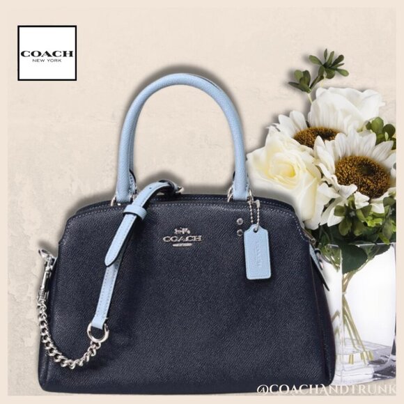 COACH Midnight and Light Blue Leather Mini Lillie Crossbody Silver Accents NWT
