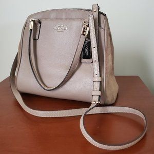 COACH Minetta Taupe Suede Leather Satchel Shoulder Crossbody Purse Bag F36122