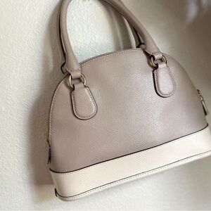 COACH Mini Cora Dome Satchel – Colorblock Taupe/Cream | Pebbled (Grain) Leather