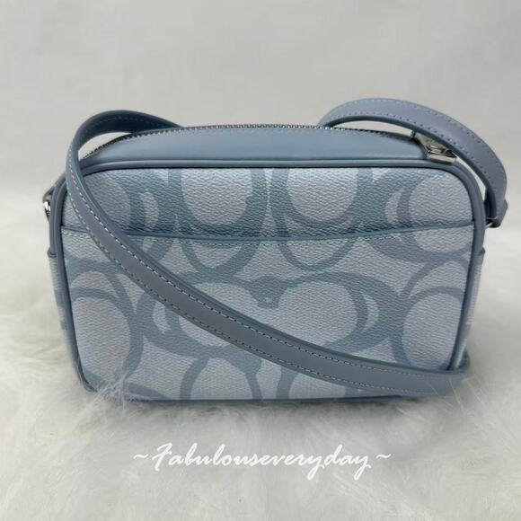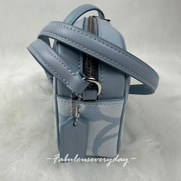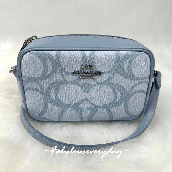 New With Tags, COACH Mini Jamie Camera Bag In Sketch Signature Canvas CBL94 Silver/Ice Blue NWT from smoke and pet free environment.