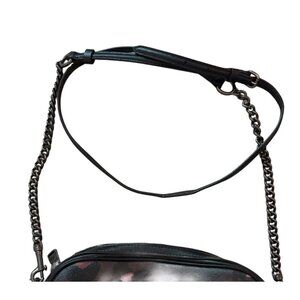 The COACH Mini Ocelot Cheetah Print Jamie Crossbody Camera Bag is a stylish and versatile accessory for women. Featuring the signature C with heart printed pattern, this small bag has a zip closure and an adjustable strap for convenience. Made from leather and signature canvas in a brown black multi color, this minimalist crossbody bag is perfect for various occasions including travel, weddings, parties, work, and more. The silver hardware accents add a touch of elegance to this chic Coach design.