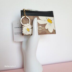 COACH Mini Skinny ID Case In Signature Canvas With Floral Print- Tan Multi 🎈⭐