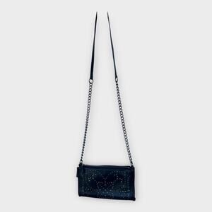 Coach studded clutch, black leather crossbody, edgy glam bag, rocker chic purse, chain strap bag, Y2K revival, festival crossbody, designer mini bag, moto style