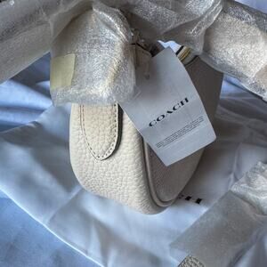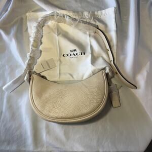 Coach Mira Shoulder Bag, CM583, Crescent Bag, Chalk White Leather, Pebbled Leather, Colorblock Purse, Signature Canvas, Coach Boutique, Minimalist Style, Quiet Luxury, Moon Bag, Designer Crossbody, NWT Coach, Authentic Coach, Streetwear, Y2K Trend, Neutral Handbag, Luxury Fashion, Coach Retail.