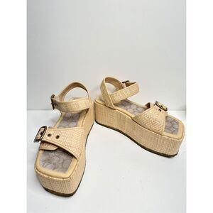 COACH Monogram Naomi Raffia Flatform Sandals Womens Size 8