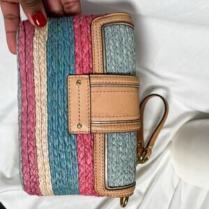 COACH Multicolor Straw Turnock Wristlet Bag Leather Trim Wristlet Rare