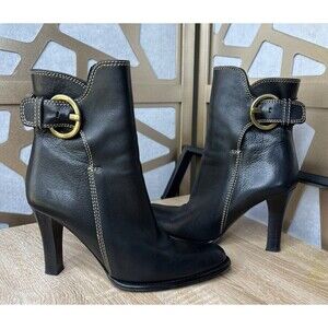 COACH NANCIE Heels BLACK SOFT CALF LEATHER ZIP Ankle BOOT Q223 Sz 5.5 B Wm ITALY