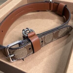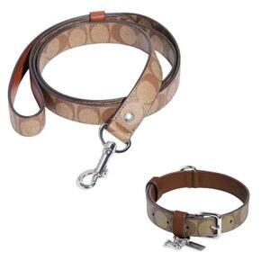 COACH NIB Dog Collar and Leash Set Size Large Khaki/Saddle/Brown Classic Logo