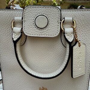 COACH NORTH SOUTH MINI TOTE CROSSBODY BAG Pebbled Leather Chalk White CJ500 New
