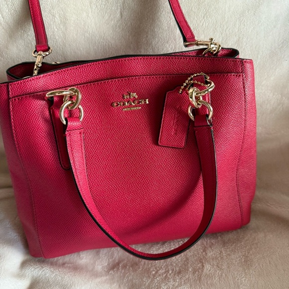 This gorgeous Coach Minetta Crossbody Shoulder Bag is the perfect mix of classic structure and bold color. Officially listed as a bright Barbiecore pink, it leans more toward a rich red in person — please see all photos for the most accurate conditions and color representation.