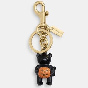 COACH NWT 2024 HALLOWEEN BLACK CAT WITH PUMPKIN KEY CHAIN/BAG CHARM CW480