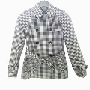 NEW COACH Chambray & Black Gingham Short Double Breasted Trench Coat Women's XS
