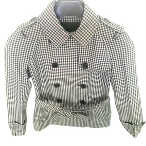 COACH NWT Chambray & Black Gingham Short Double Breasted Trench Coat Women's XS