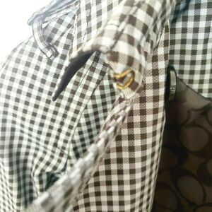 Brand new with tags 100% Authentic Coach New York double breasted plaid short Trench Coat. 8 signature Coach Buttoned front closure. Matching gingham belt that ties at the waist. Epaulet details on the shoulders and wrists. 2 front slit pockets. Back Slit detail. Water Resistant. Fully lined Coach monogrammed interior. Comes with the original garment bag. Measurements laying flat are approximately 17.5" across the chest 18" shoulder to shoulder 26.5" length 22" Sleeve length 18" waist.