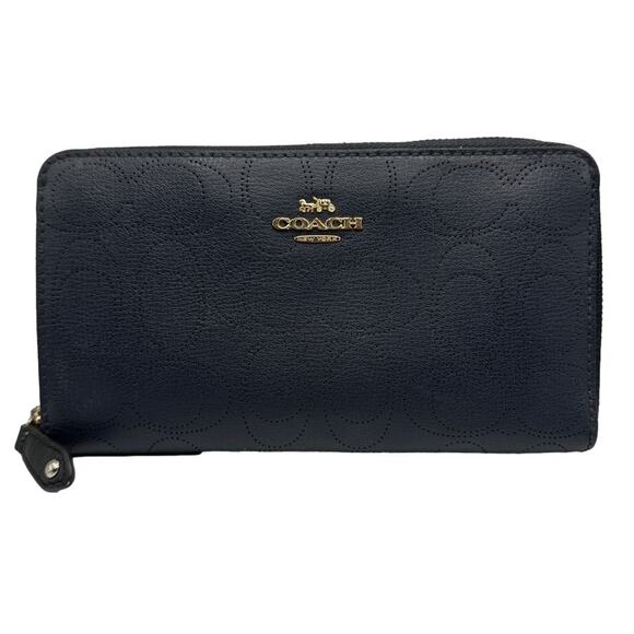 COACH Navy Blue Signature Dotted Zip Around Wallet