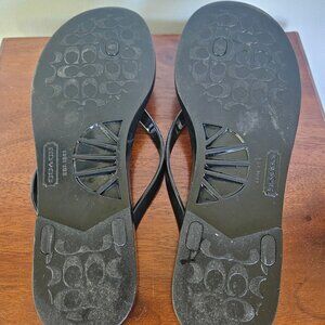 COACH New York Landon Black Thong Jelly Flip Flops Sandals with Gold Bow Size 7