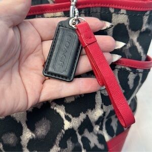COACH OCELOT LEOPARD CARRIE PARK TOTE BAG F23278 RED BLACK GRAY MULTI