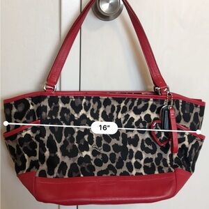 COACH OCELOT LEOPARD CARRIE PARK TOTE BAG F23278 RED BLACK GREY