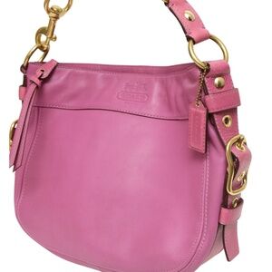 Coach Outlet Fuchsia Color Leather Shoulder Bag Hobo Brass HW