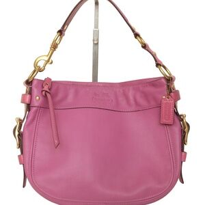 COACH OUTLET Leather Shoulder Bag Hobo Fuchsia Pink Gold Brass HW