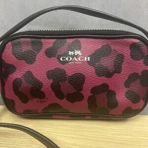 COACH Ocelot Vintage Print Pouch Crossbody Black/Red G1580 Made In Vietnam