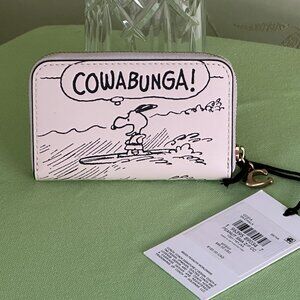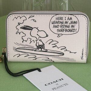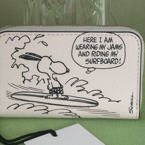 COACH QUALITY AND STYLING MEET SCHULZ'S ICONIC CHARACTERS, SNOOPY, TO CREATE THIS FUN AND FUNCTIONAL, AUTHENTIC COACH SMALL ZIP-AROUND CARD CASE!
