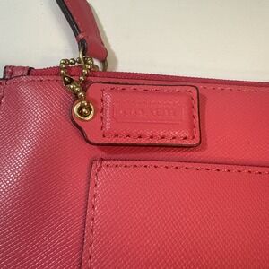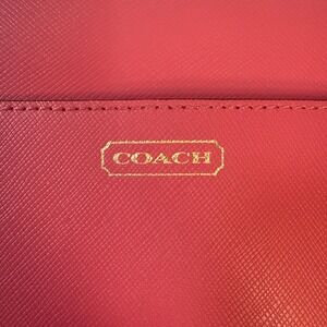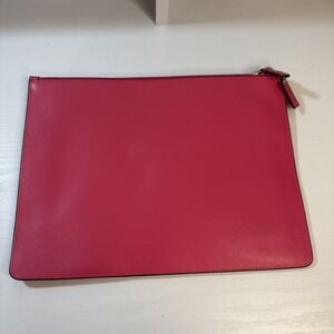 The Coach Pink Large Skinny Tech Zip Pouch is a stylish and functional accessory designed for women. Made with coated canvas and leather trim, this large pouch features a zip closure and is part of the Coach Peyton product line. The vibrant pink exterior color adds a pop of color to any outfit, while the sleek design makes it perfect for storing essentials on the go. With its versatile style, this Coach pouch is a must-have for any fashion-forward woman. Porch is new without tags.
