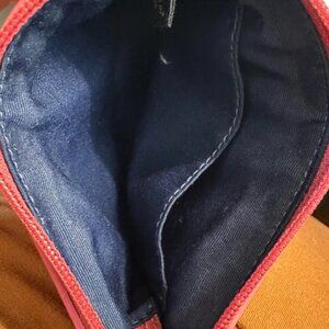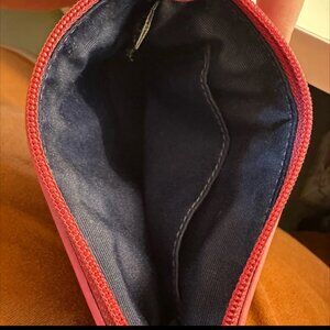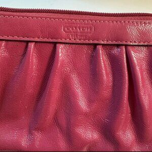 This chic Coach clutch in a vibrant pink hue features elegant pleated leather detailing, adding a touch of sophistication to its sleek design. The wristlet strap offers convenience, making it perfect for carrying your essentials on the go. Its glossy finish enhances the luxurious feel, making it a standout accessory for any occasion.