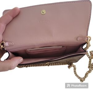 COACH PINK/BROWN WRISTLET/PURSE. Measurements in the photos. Comes in coach box but not original box, was from another wallet she had.