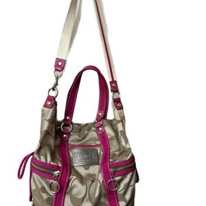 COACH POPPY SIGNATURE LUREX SPORTLIGHT KHAKI JACQUARD TOTE SHOULDER BAG 13847