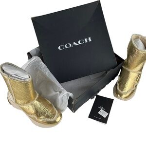 COACH PORTIA GOLD METALLIC SHEARLING WINTER CHUNKY SNEAKER SOLE Y2K ANKLE BOOTS