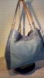 For offer is a classy bag from Coach. This is midnight blue, soft leather, jacquard light gray and blue fabric, fine trim in deep Burgundy. There are 3 separate compartments, center has zipper closure, two side compartments close with magnetic snaps- so handy to reach in and grab wallet or phone. Double shoulder strap with 10" drop.