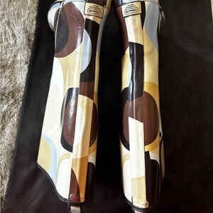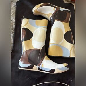 COACH Paisley Tall Rain Boot logo flat shoes all weather calf high designer y2k