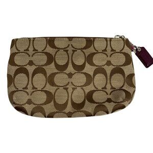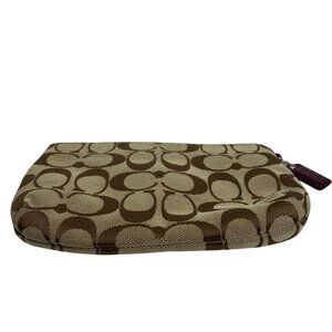 COACH Park Signature Logo Jacquard Wallet Clutch Leather Trim NO STRAP