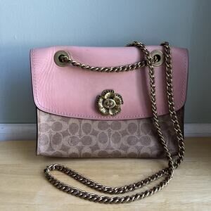 COACH Parker 30585 Pink C Logo Canvas+Leather. Shoulder+crossbody Bag purse