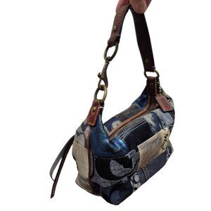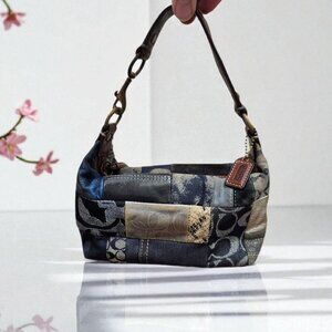 COACH Patchwork Denim Flower Print Accessory Pouch Mini Bag Indigo Canvas RARE