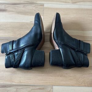 COACH Paulina Black Leather Ankle Boots Embossed Snake Belt Booties Size 10
