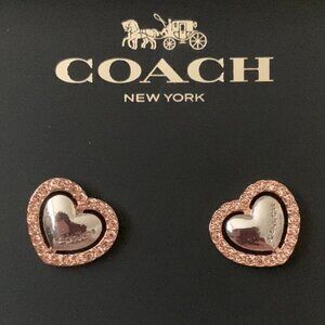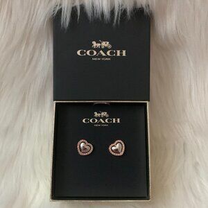 COACH PAVE HALO HEART STUD EARRINGS