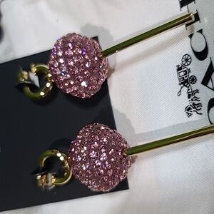 EDITOR'S NOTES : Playful drop earrings featuring huggie with glistening pink pavé lollipop.