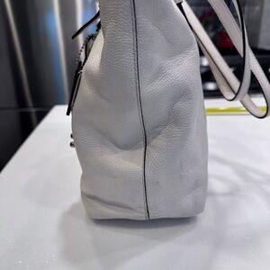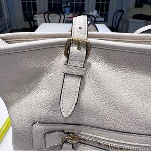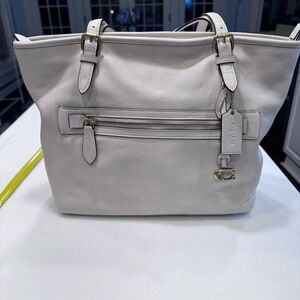 COACH Pebble Leather Taylor Medium Tote C Dangle Charm Chalk EUC