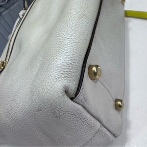COACH Pebble Leather Taylor Medium Tote C Dangle Charm Chalk EUC
