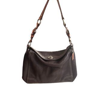 COACH Pebbled Leather Vintage Shoulder Flap Bag Brown