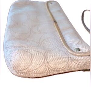 COACH Penelope Gold Metallic & Tan Linen, Gold Leather Clutch/Wristlet Small Bag
