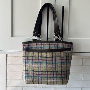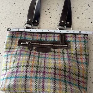 COACH Penelope Wool Tattersall Tweed Leather Trim Tote Shoulder Hand Bag Multi Colored
