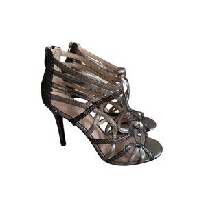 COACH Pewter Silver Metallic Leather Cage Heels Size 9
