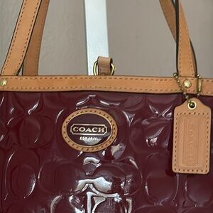 This COACH Peyton Burgundy Handbag is in Exceptional Used Condition (EUC): Previously lovingly cared for; but this is a preloved (used) item, some normal and minimal wear is expected. Review pics as they’re part of the description. Sold as is, no refunds. All auction bids/wins are final, no cancellations.
