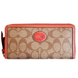 COACH Peyton Zip Around Canvas Coated Monogram Wallet with Orange Patent Leather