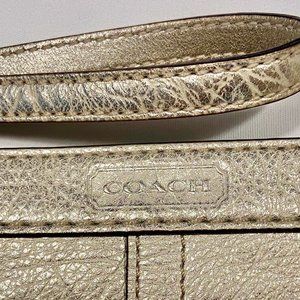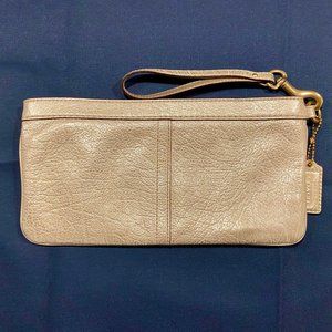 COACH Platinum Gold Metallic Lg Leather Wristlet Clutch 13276 Evening Formal Y2K